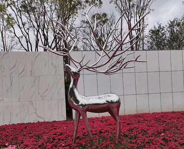 優藝雕塑制作的的這一只鏡面不銹鋼鹿雕塑,總高4.5米,工廠歷時20天制作完成,整體包裝物流發貨歷時約5天到貨。雕塑可放置在花園樓盤公園商場等地方的草地水景處。雕塑采用常規國標304 2.5mm不銹鋼板材鍛造,雕塑整體采用優質不銹鋼板材切割焊接,表面進行高級鏡面拋光處理。