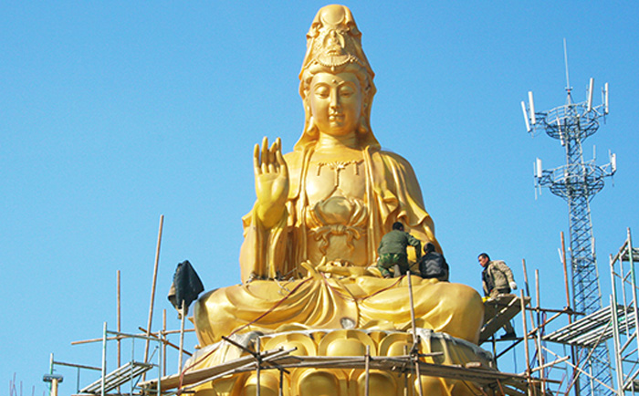 我廠總占地面積三十多畝、擁有標準廠房二萬多平方米,集聚了一大批雕塑精英和優秀藝人隊伍,公司現有員工近200人,主要生產銅雕佛像、脫胎佛像、銅雕神像、脫胎神像、供桌、佛臺等宗教工藝制品,是曲陽市市規模較大、品種較齊全、制作專業的銅佛像廠家之一。